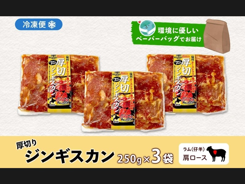 北海道 厚切り 肩ロース 生ラム ジンギスカン 250g×3袋 ラム タレ たれ 羊肉 贅沢 鍋 焼肉 ジューシー ...
