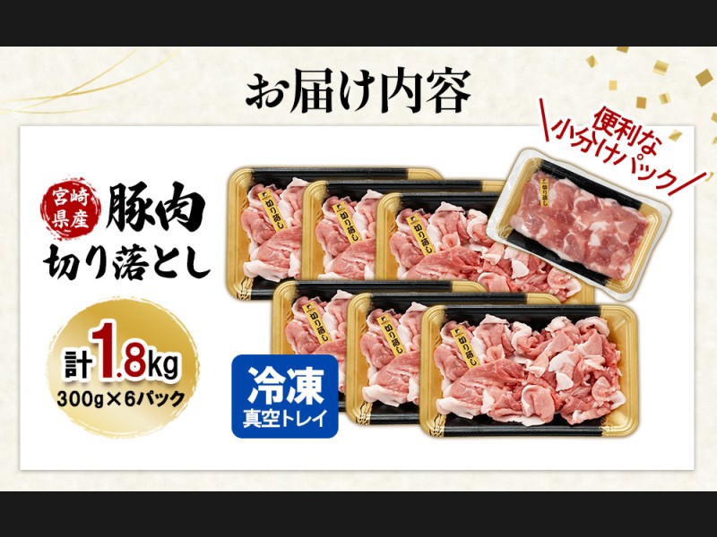 【真空パックで鮮度長持ち!】宮崎県産 豚肉 切り落とし 1.8kg (300g×6パック) 便利な小分けパック 冷凍