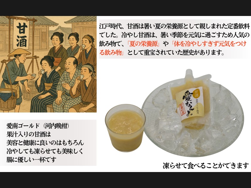 甘酒と愛南ゴールド(河内晩柑)を絶妙にブレンドした「愛南ゴールド入り 甘酒」は、