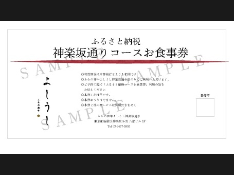 サイズ: ふらの和牛よしうし神楽坂通り店限定【神楽坂通りコース】で使えるお食事券です。