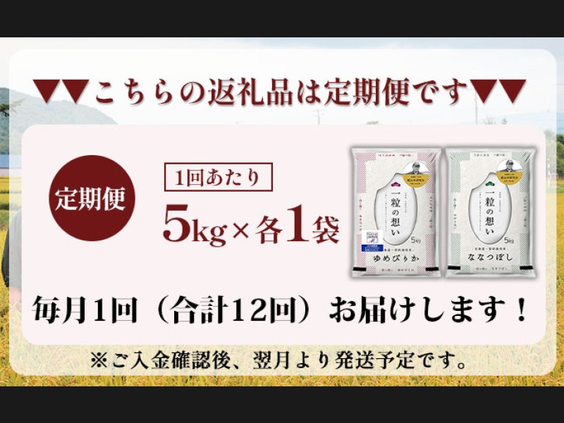 【2025年産米】12ヵ月 定期便 銀山米研究会のお米<ゆめぴりか&ななつぼし>セット 計10kg(各1袋×5kg...