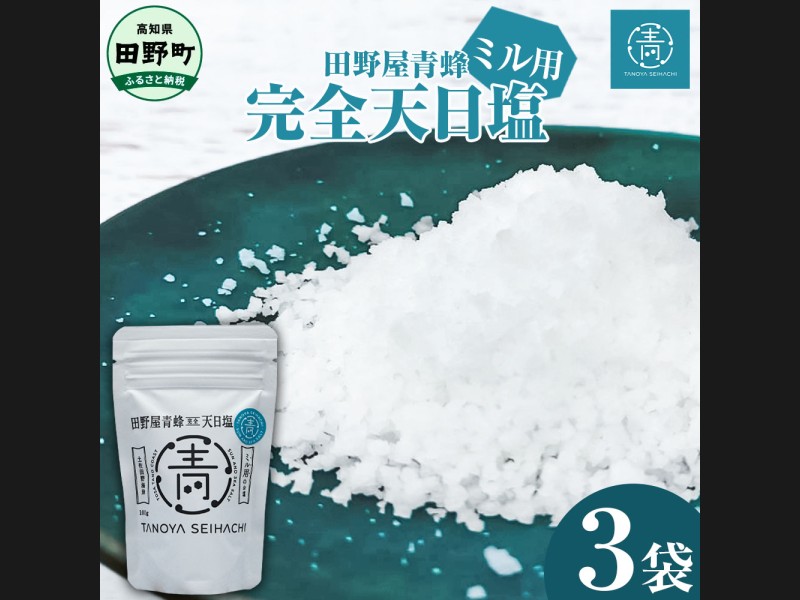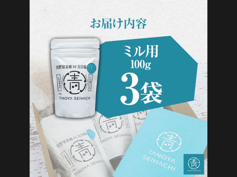 塩職人・田野屋青蜂が作る完全天日塩のミル用を3個セットにしました。
