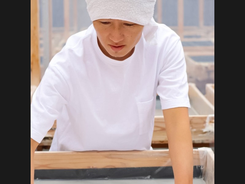 夏には60℃を超える製塩ハウスの中で、一日に幾度も攪拌作業を繰り返し、いくつかの季節を超え、ゆっくりと結晶化させていきます。