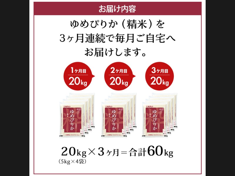サイズ: ホクレンゆめぴりか精米20kg(5kg×4袋)を3ヵ月間お届けいたします