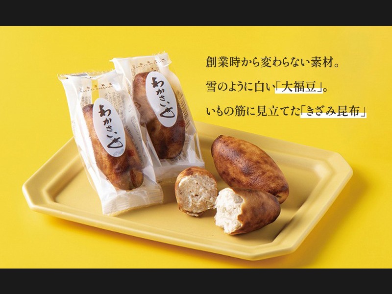芋を使わず北海道産の大福豆を主原料に餡を作り、芋の筋に見立てて細かい昆布を入れ、 焼芋の色にするため卵正油を塗って焼いています。