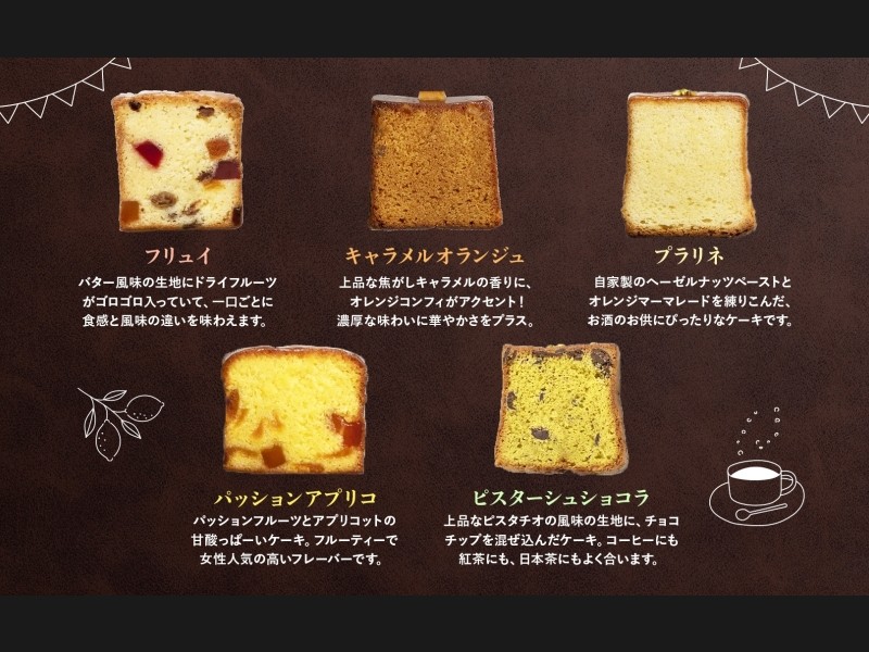 ※在庫状況により別の種類のパウンドケーキスライスが入る場合もございますので、あらかじめご了承願います。