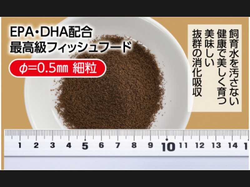 魚の健康と良好な水質を追求。ビタミン・ミネラルの豊富な海藻を多量に使用し消化吸収の難しい小麦粉類を排除。 魚が生きていくために非常に重要な働きをする生理活性物質を作り出すEPA・DHAの配合に成功。高次元の栄養バランスを実現した画期的なドライフードです。