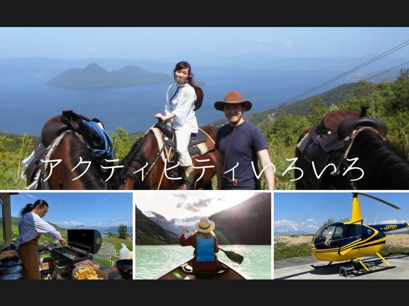 洞爺湖SUPツアー、洞爺湖カヌー、洞爺湖プライベートサイクリングツアー、洞爺湖スカイクルージング、洞爺湖ホーストレッキング、ハーブティー作り体験、洞爺湖プレミアムアウトドアダイニング