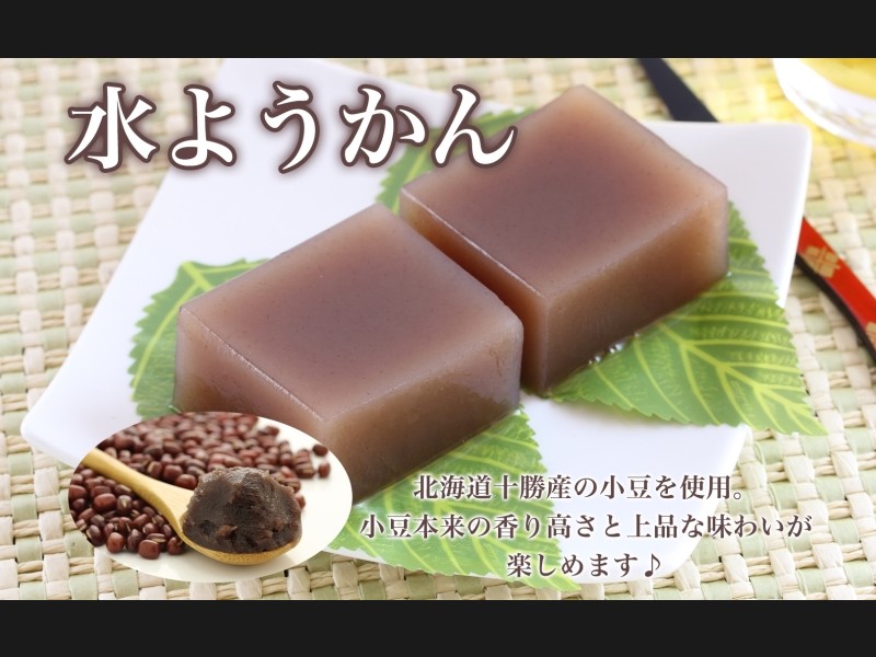 区域外から仕入れた原料をもとに、区域内の菓子店にて原材料調整、豆をゆで、味付け、漉し、充填、冷却して固めるまでの一連の工程を行い、水ようかんに加工している。