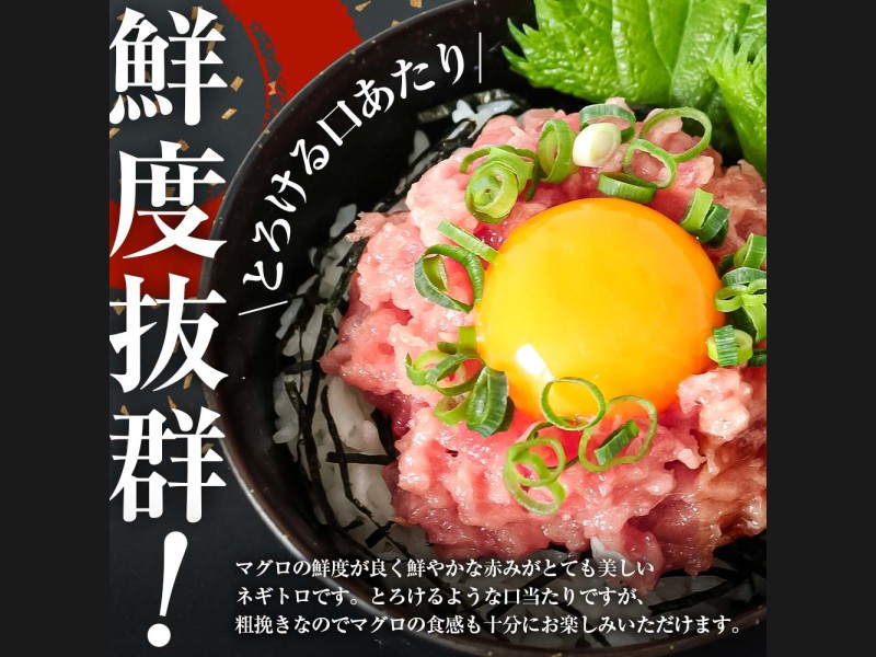 主にキハダマグロを原料に使った、マグロの鮮度が良く鮮やかな赤みがとても美しいネギトロです。