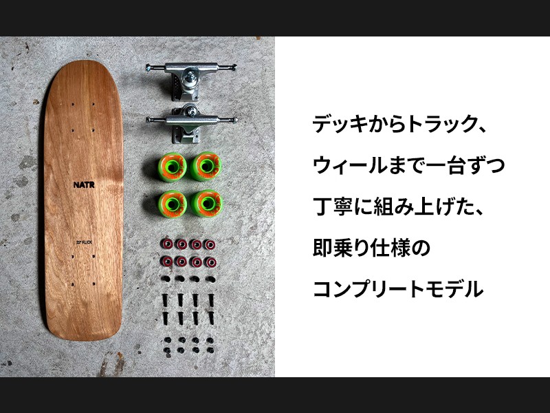 デッキからトラック、ウィールまで一台ずつ丁寧に組み上げた、即乗り仕様のコンプリートモデルです。