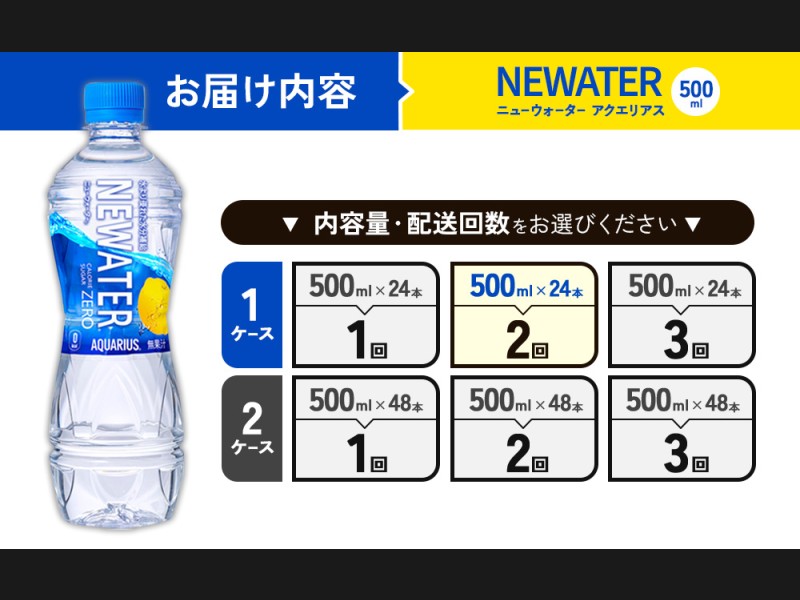 【2回定期便】アクエリアス ニューウォーター 500ml PET【コカ・コーラ】ペットボトル 1ケース(24本) 定...