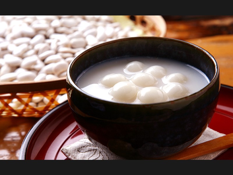 白いおしるこ:区域外の原料をもとに、洞爺湖町内で豆をゆでて漉して白あんを作り、おしるこに加工しています。