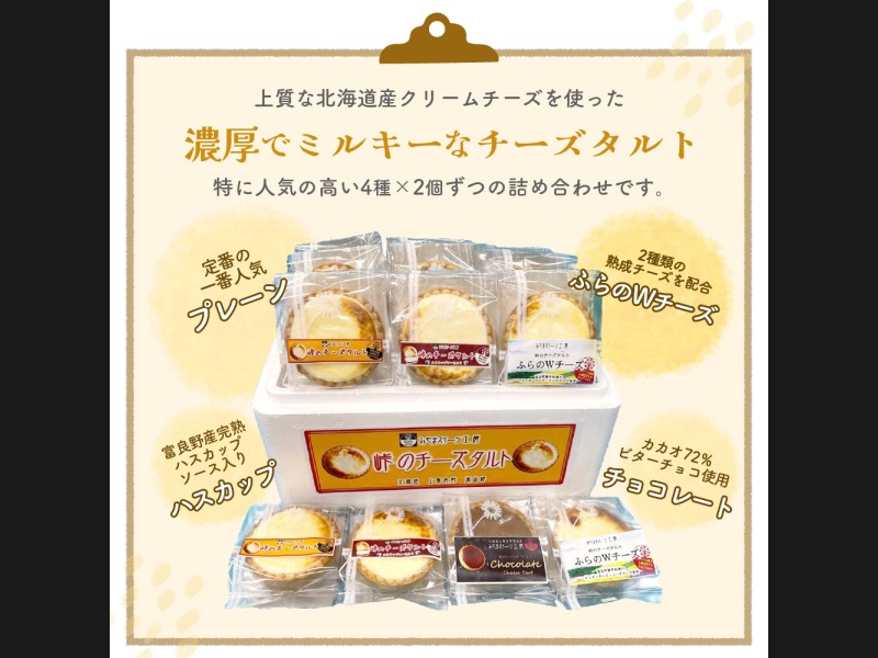 サイズ: 峠のチーズタルト・プレーン、ハスカップ、ふらのWチーズ、チョコレート 各2個入り 計8個セット