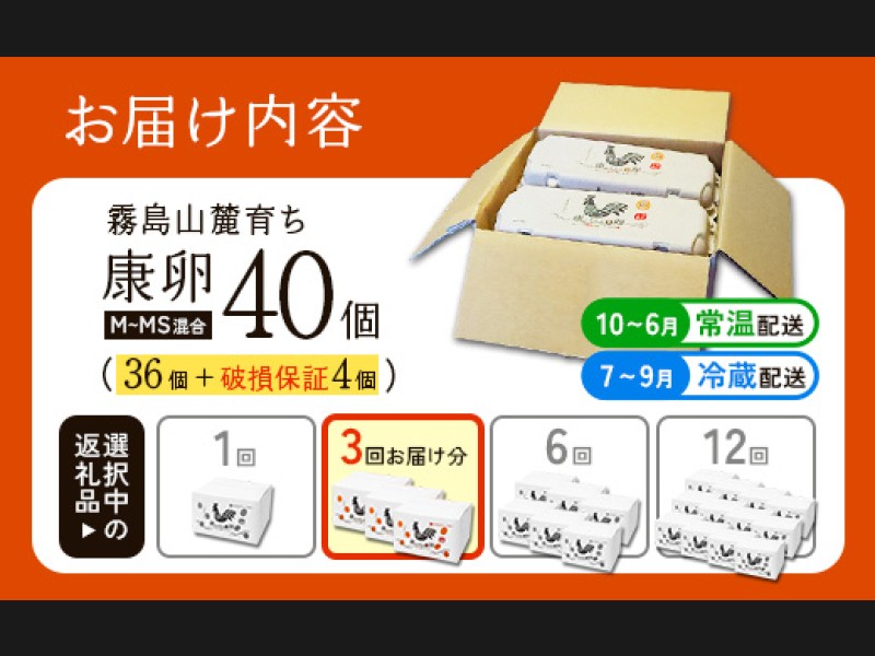 【ふるさと納税】卵【3回 定期便】霧島山麓育ち こだわり卵 康卵 計40個(36個 + 割れ保証4個)3回 計 1...