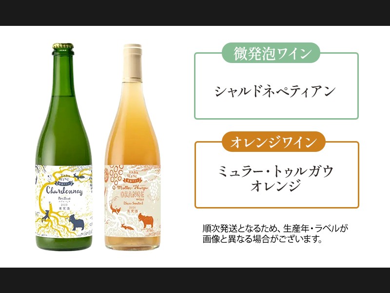 赤ワイン1本、白ワイン1本、微発泡ワイン1本、オレンジワイン1本です。