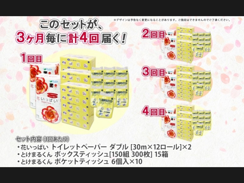 定期便 3ヵ月毎4回 北海道 花いっぱい トイレットペーパー ダブル 24ロール とけまるくん ボックスティ...