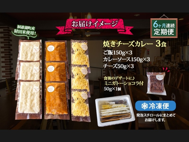 定期便 6回連続 パーラーふくだ特製 焼きチーズカレー 3食 ミニガトーショコラ付 北海道 財田米 カレー...