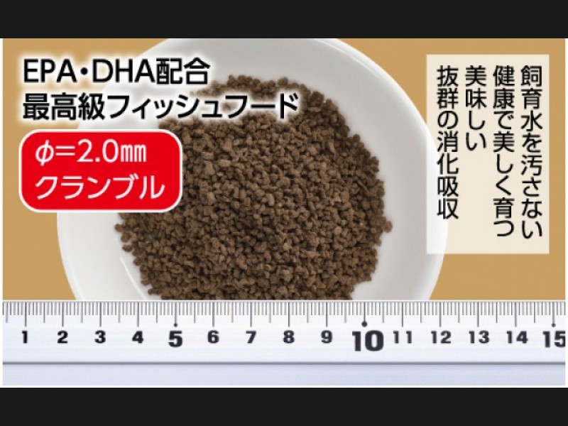 魚の健康と良好な水質を追求。ビタミン・ミネラルの豊富な海藻を多量に使用し消化吸収の難しい小麦粉類を排除。 魚が生きていくために非常に重要な働きをする生理活性物質を作り出すEPA・DHAの配合に成功。高次元の栄養バランスを実現した画期的なドライフードです。