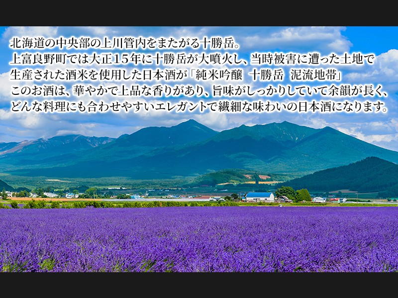 上富良野町は大正15年(1926年)に活火山・十勝岳が大噴火し、それに伴って発生した融雪泥流によって大きな被害を受け、死者・行方不明者は144名に上りました。この度、当時被害に遭ったその土地で生産された酒米を使用した日本酒が誕生しました。その名は「純米吟醸 十勝岳 泥流地帯」。道産酒米「きたしずく100%」で造られたこのお酒は、華やかで上品な香りがあり、旨味がしっかりしていて余韻が長く、どんな料理にも合わせやすいのが特徴です。ひと言で言うと、エレガントで繊細な味わいの日本酒です。ラベルの文字は毎日書道展審査会員でもある書家・吉田久実子氏が揮毫し、小説「泥流地帯」に描かれた十勝岳噴火災害当時の村長で、「奇跡の復興」をけん引した吉田貞次郎氏の孫にあたります。