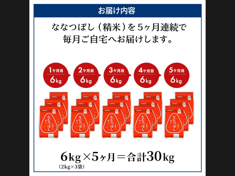 サイズ: ホクレン喜ななつぼし精米6kg(2kg×3袋)を5ヵ月間お届けいたします