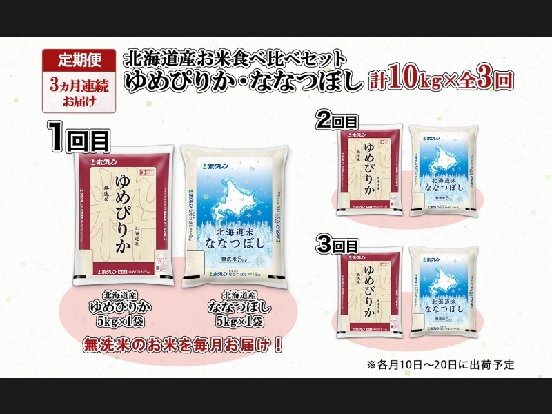 定期便 3ヵ月連続3回 北海道産 ゆめぴりか ななつぼし 食べ比べ セット 無洗米 5kg 各1袋 計10kg 米 特A...