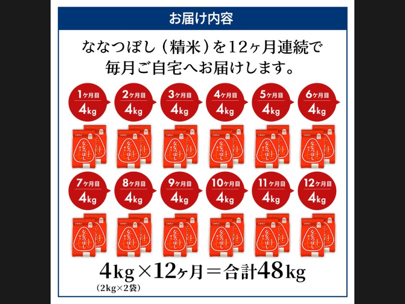 サイズ: ホクレン喜ななつぼし精米4kg(2kg×2袋)を12ヵ月間お届けいたします