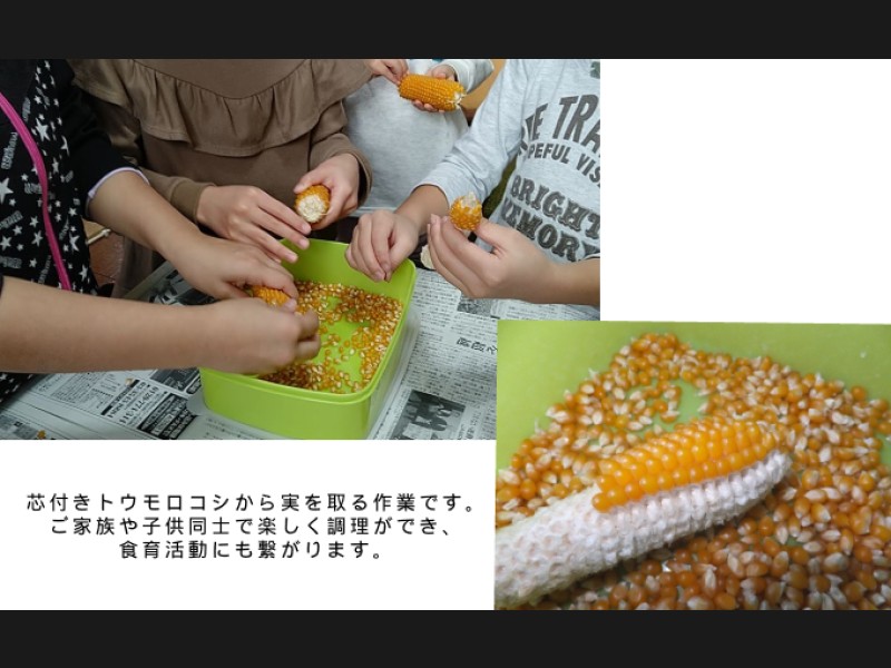 35年以上にわたり観光農園として営んでおります『かんのファーム』にて栽培しましたポップコーン用の乾燥トウモロコシのセットです。