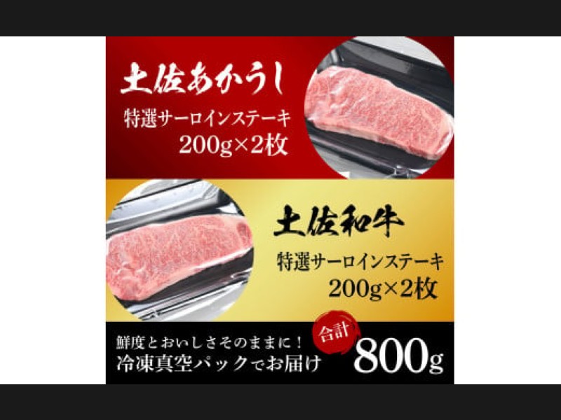 土佐あかうし&土佐和牛2種食べ比べ(200g×4枚)特選サーロインステーキ サーロイン 特選 牛肉 赤牛 あ...