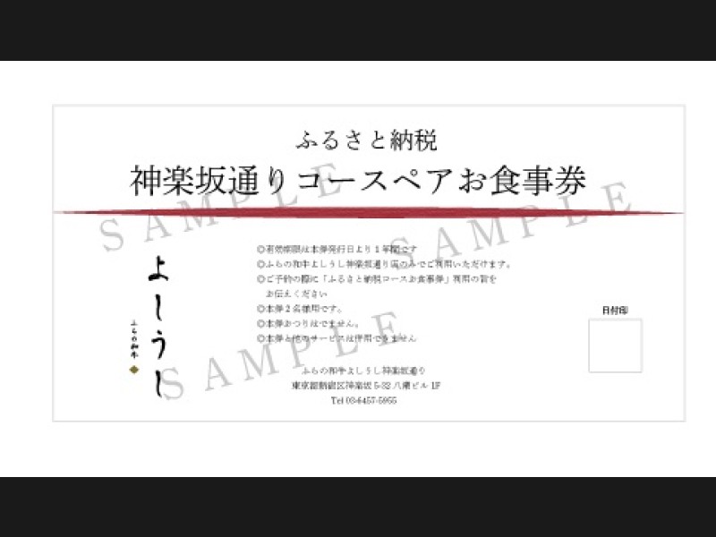 サイズ: ふらの和牛よしうし神楽坂通り店限定【神楽坂通りコース】で使える2名様用お食事券です。
