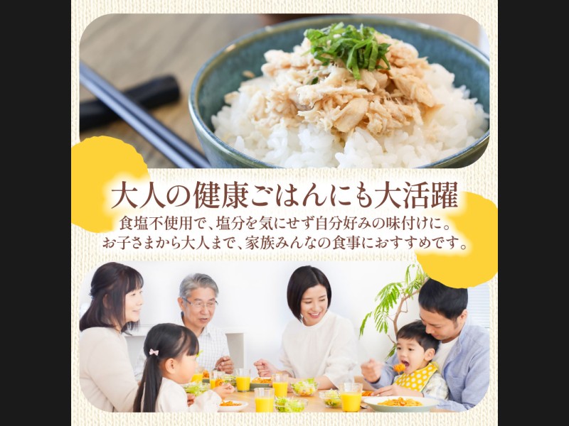ノンオイルで食塩不使用、添加物不使用のヘルシーなマグロの水煮です。長期間保存が可能でパスタ・サラダ・おにぎりなど様々な用途で使用いただけます。