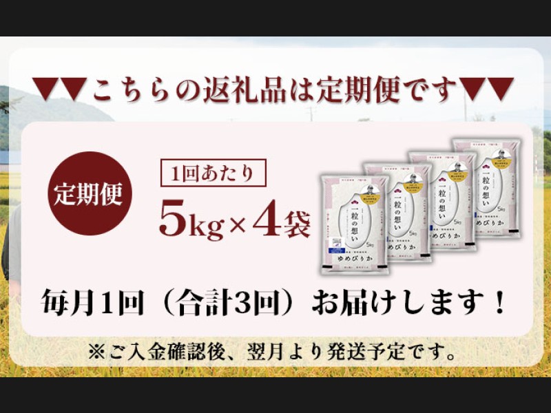 3ヵ月 定期便 銀山米研究会のお米<ゆめぴりか>20kg(5kg×4袋)【機内食に採用】 ライス 白米 精米 ブ...