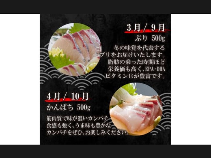 4月、10月: カンパチ 2パック (500g以上)
