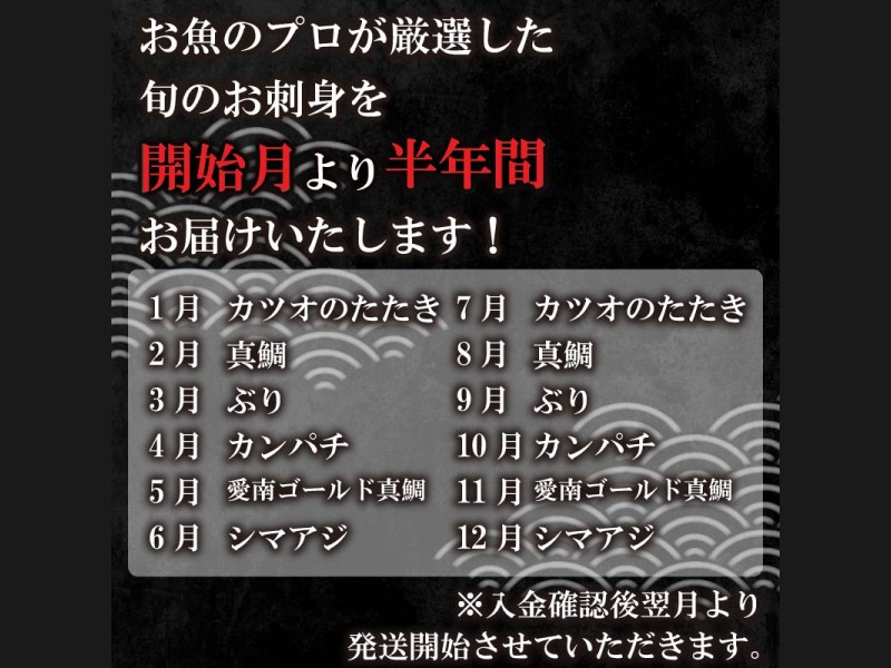 定期便 6回 刺身 鮮魚 冷凍 真空 パック 旬 かつお タイ ブリ 愛南ゴールド真鯛 シマアジ カンパチ 高級...