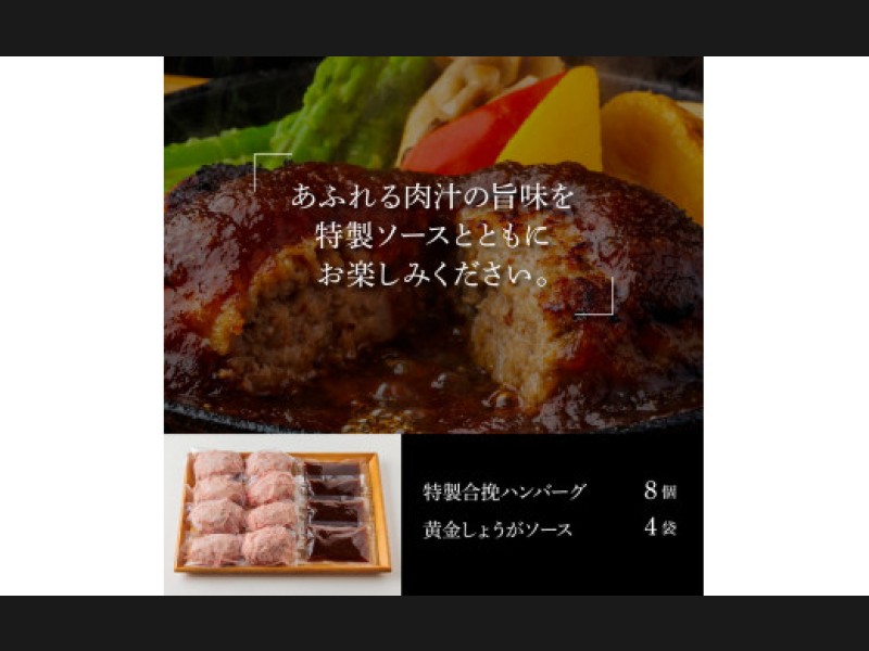 サイズ: 非加熱ハンバーグ130g×8ケ、自家製黄金しょうがソース×4ケ