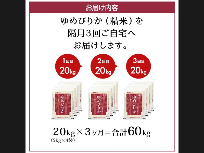 サイズ: ホクレンゆめぴりか精米20kg(5kg×4袋)を隔月3回お届けいたします