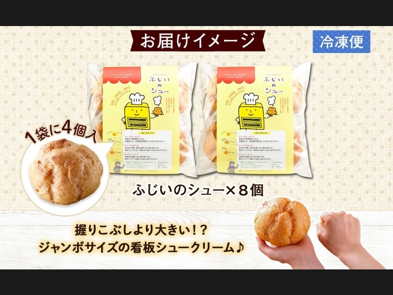 内容量:シュークリーム(2個入り)×4袋 計8個