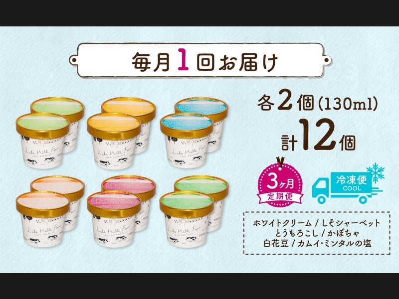 定期便 3ヵ月 連続 全3回 北海道 まきばのジェラート 6種 各2個 計12個 セット ジェラート ミルク 赤し...