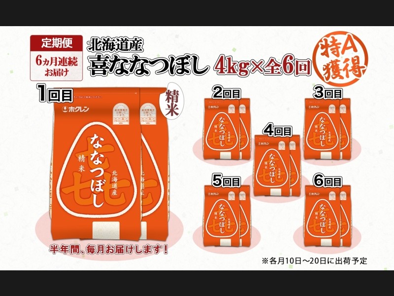 定期便 6ヵ月連続6回 北海道産 喜ななつぼし 精米 4kg 米 特A 白米 ななつぼし ごはん ブランド米 4キロ...