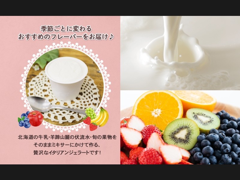 店主こだわりのアイスは、濃厚なミルクと完熟果実の豊かな風味がお口いっぱいに広がり、