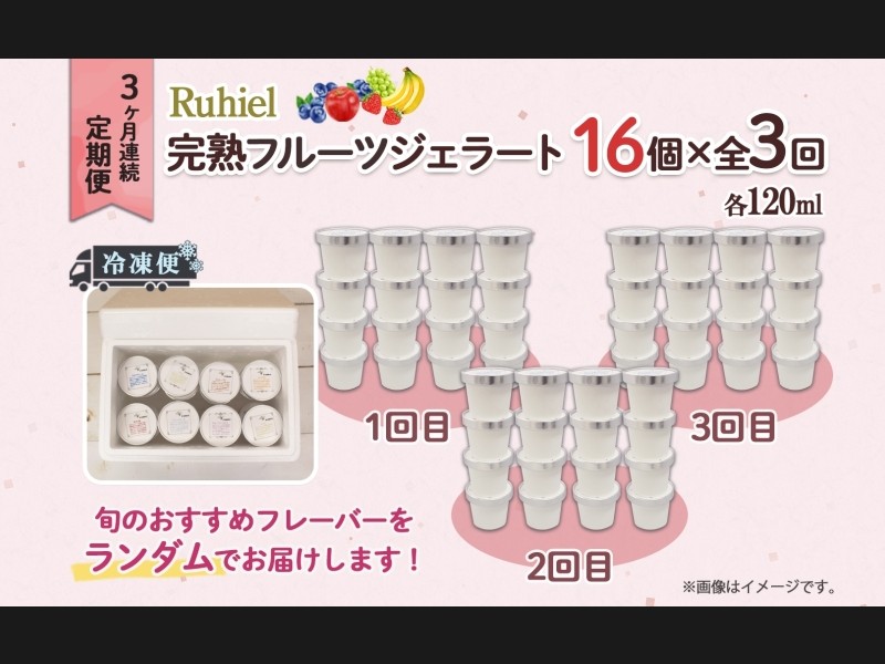 北海道 定期便 3ヶ月連続全3回 Ruhiel 完熟フルーツジェラート 16個 計48個 アイス 詰め合わせ ジェラー...