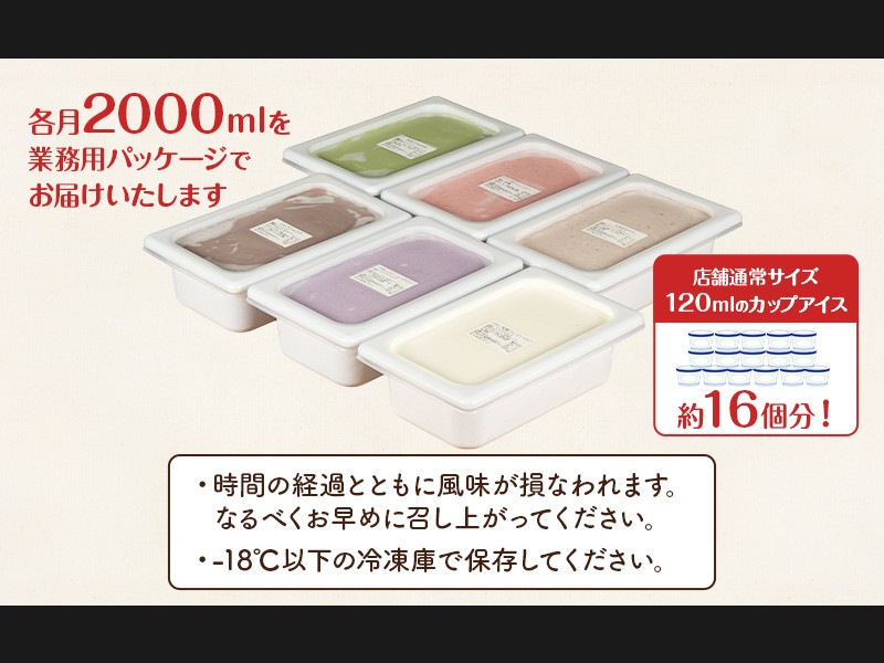 サイズ: 業務用ジェラート2L 6種×各月1個ずつお届け