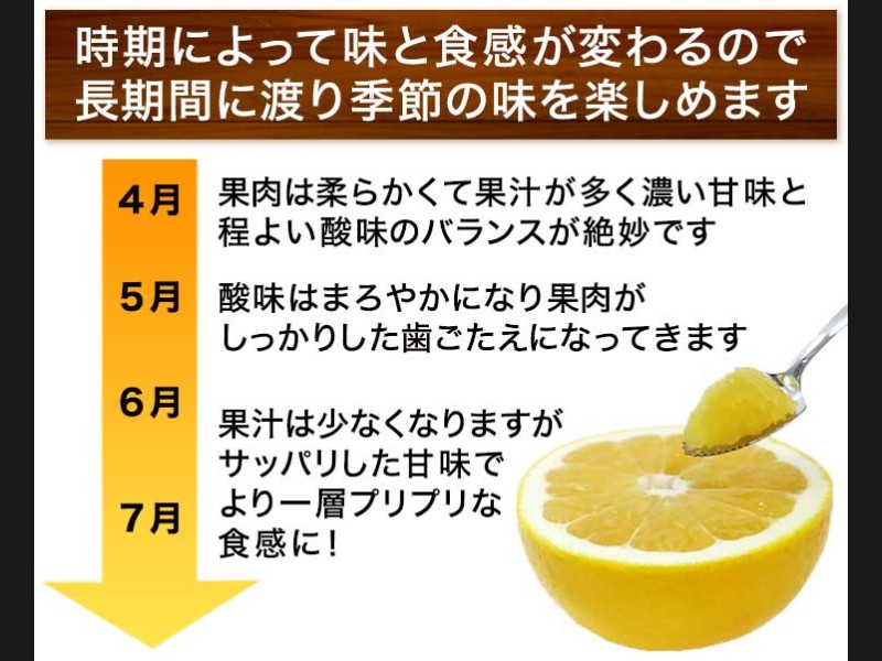 7月以降:見た目は少し悪くなりますが、果肉の水分が適度に抜け、食感が「パリッ」と変化。土佐文旦や八朔を思わせるプリプリとした歯ごたえは、この時期ならではの隠れた魅力です。