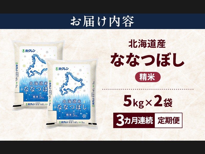 【3ヵ月連続定期便】北海道産 ななつぼし 精米 10kg 米 特A 獲得 白米 ごはん 定期便 定期配送 3ヵ月 道...