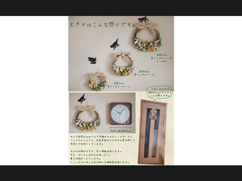 ※自然素材を使用したハンドメイドのリースですので形や大きさ、色に個体差がございます。