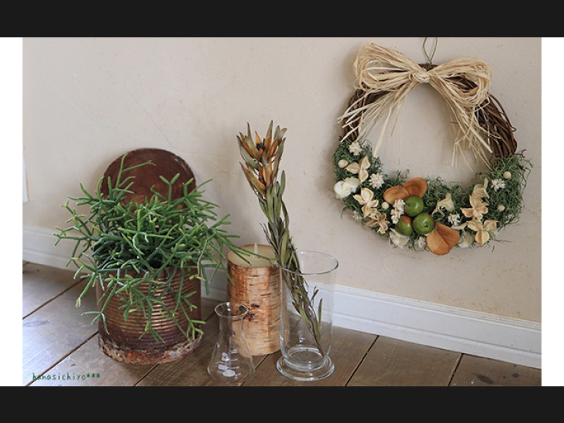 ドア用リースとしてだけでなく、新築祝いやお誕生日、お店の開店祝いなどのギフトやプレゼントから、お家の中でインテリアとしてディスプレイしていただいても♪