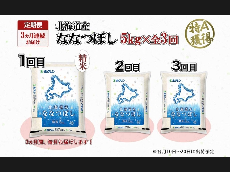 北海道産の特A米『ななつぼし』精米 5kg×全3回をお届け!