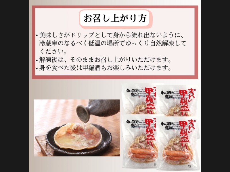 19-97 ずわい甲羅盛り 70g(正味)×4個 【かにみそまで完全無添加】 |かに ずわいがに 高品質