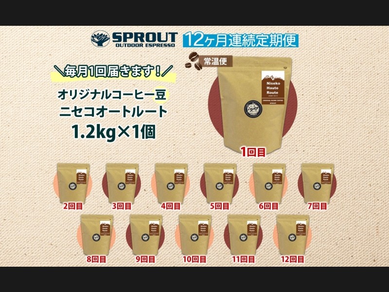 ニセコエリアのおしゃれなロースタリーカフェ「SPROUT」が自家焙煎で作った「コーヒー豆12ヶ月定期便」です。