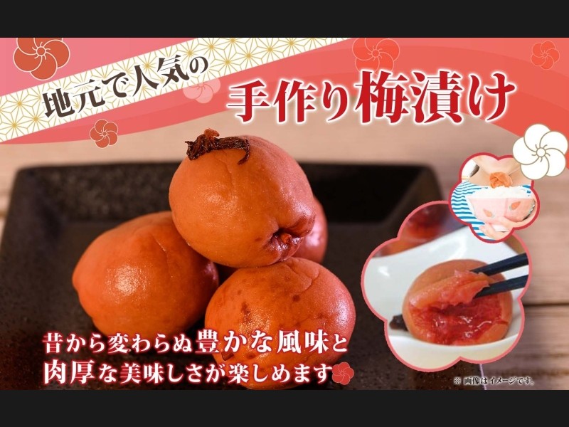 赤しその風味も豊かに口に広がり、食べた方からは、「昔、おばあさんがつけてくれていた梅の味がする」と懐かしむ表情でリピートしてくださる、地元でも大変人気の梅漬けです。